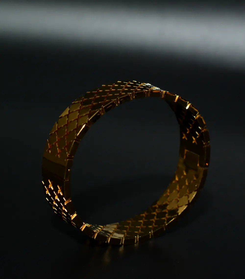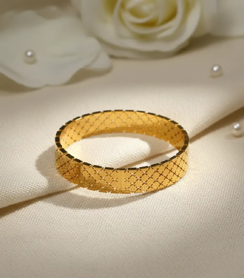 A bangle having daimond shape designs, Versatile enough for everyday wear or special gatherings, it effortlessly enhances your style with graceful charm.
