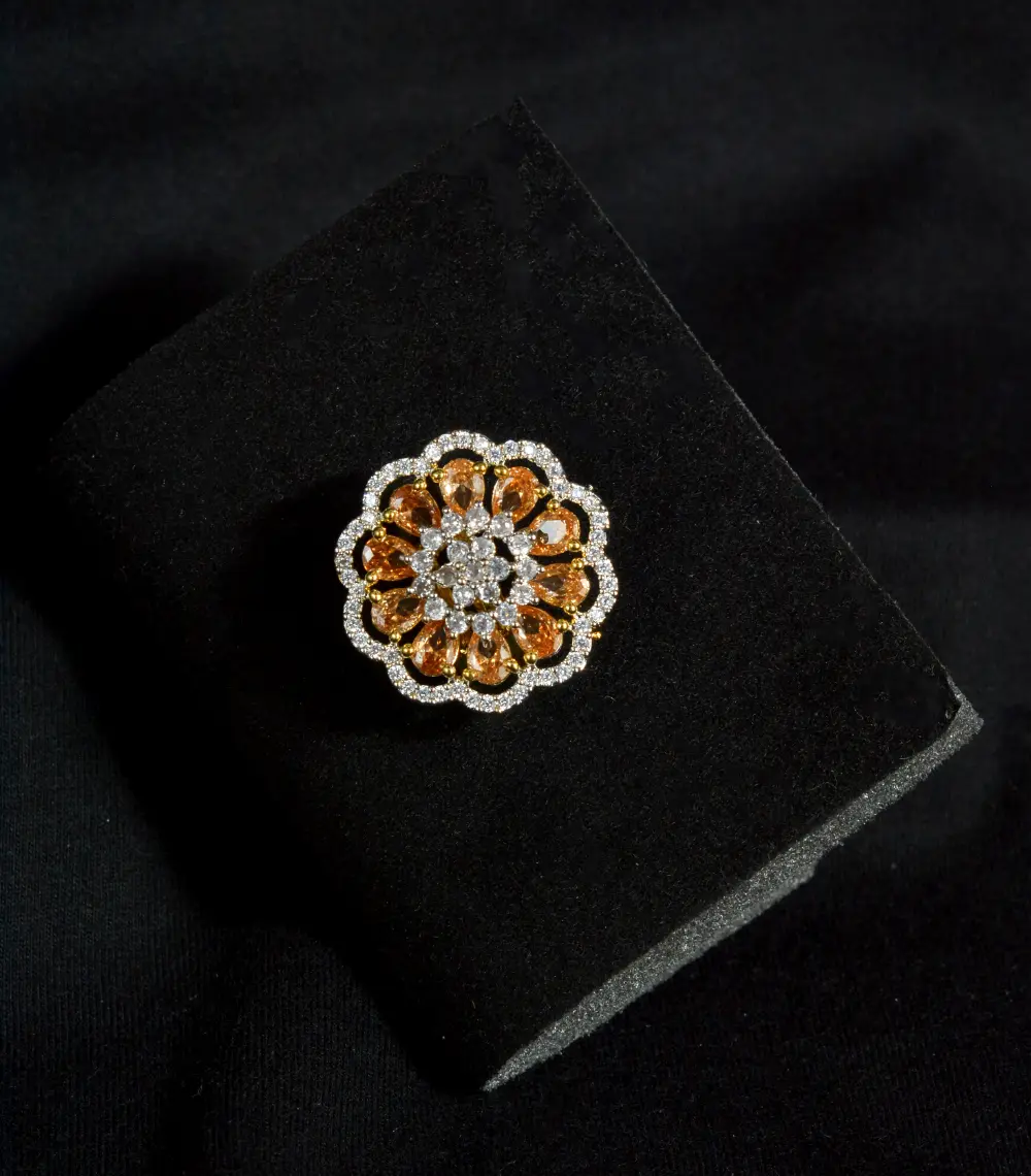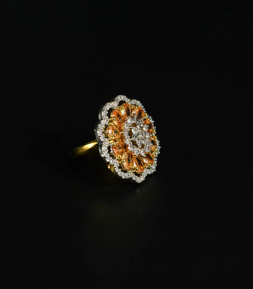 A delicate gold and champagne-toned ring, inspired by the elegance of jasmine blooms. Perfect for formal wear and adjustable for a perfect fit.